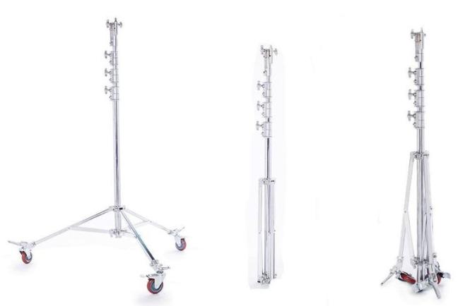 De BRESSER BR-C6M is een van de sterkste statieven voor de video, film of fotostudio. Op dit heavy duty statief kunnen ook de zware fresnel-lampen zonder problemen aan. Het geheel is eenvoudig verrijdbaar dankzij de sterke wielen. Op de spigot-aansluiting bovenop het statief kunnen de lampen of flitsers gezet worden. Ook kan er een optionele boomarm geplaatst worden.