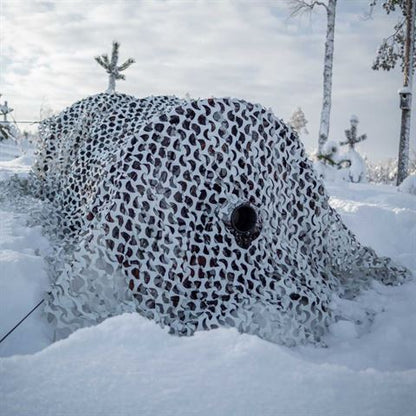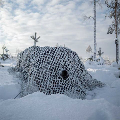 Dit camouflagenet is groot genoeg om jou, je uitrusting, je fototent of je auto te camoufleren. Het camouflagenet kan natuurlijk ook gebruikt worden om je schuiltent nog meer te laten opgaan in besneeuwde gebieden.