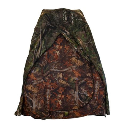 Als je vanuit een nog lagere positie wilt fotograferen, draai je de hideover 180 graden zodat je de achterkant van de tent gebruikt. (met de verticale rits).