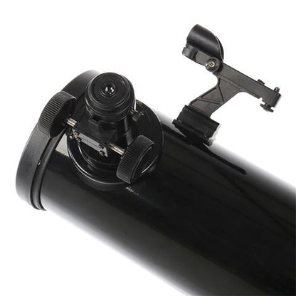 Met behulp van de Red Dot zoeker kan de telescoop eenvoudig op een hemellichaam gericht worden. Wanneer er door de Red Dot gekeken wordt en je beweegt de telescoop zo dat het rode puntje zichtbaar op een hemellichaam staat, zal je dit ook zien wanneer je door het oculair kijkt.