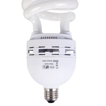 Deze Falcon Eyes Spiraallamp heeft een vermogen van 70W, een kleurtemperatuur van 5500K. De lamp beschikt over een E27 fitting.