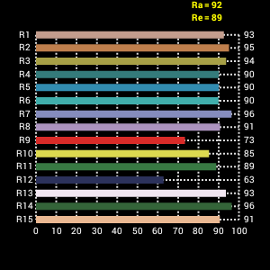 Het vermogen van een fluorescentie (spiraal)lamp kan met een factor 5 vermenigvuldigd worden, om het zo te kunnen vergelijken met de opbrengst van een traditionele gloeilamp. Het vermogen van deze ML-LED45F is dus vergelijkbaar met een 540W gloeilamp. De beste manier om de lichtopbrengst te vergelijken is echter door middel van de LUX waarde per lamp, deze is te vinden bij de specificaties.