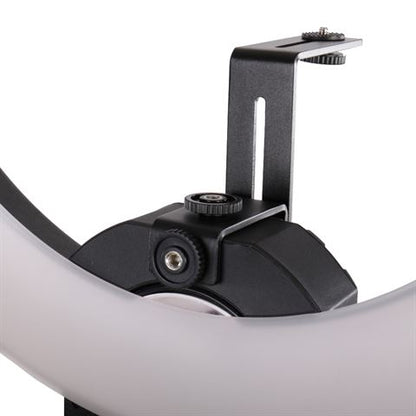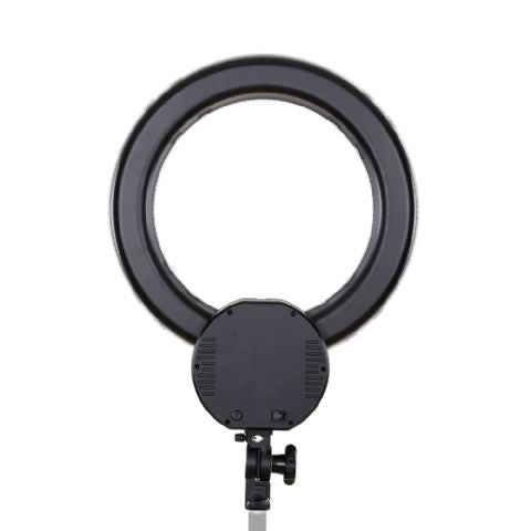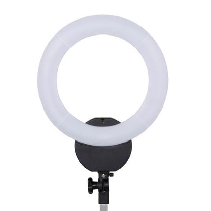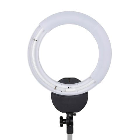 Deze Falcon Eyes fluorescentie ringlamp geeft een continuverlichting van 55W (vergelijkbaar met 275W). De kleurtemperatuur is 5500 Kelvin (daglicht). De lamp is gemakkelijk op een lampstatief of spigotadapter te plaatsen. Hij is te gebruiken bij uw opnametafel voor een mooie, schaduwloze uitlichting van kleine onderwerpen. De opening van de lamp is 29,5 cm. Er wordt ook een beugel meegeleverd, waarop u uw camera kunt monteren. De ringlamp werkt op een spanning van 230V en is niet dimbaar.
