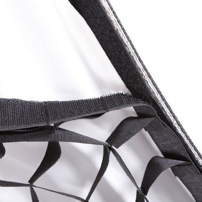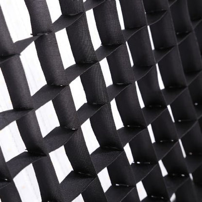 De softbox plaats je diep in de lichtbron, zodat weinig licht verloren gaat. De softbox zorgt dan voor een mooie, zachte uitlichting. Om meer controle te krijgen over het licht kun je de meegeleverde honingraat op de softbox plaatsen. Het werken met een honingraat geeft een beter gebundeld licht, waardoor je het beter kunt sturen.