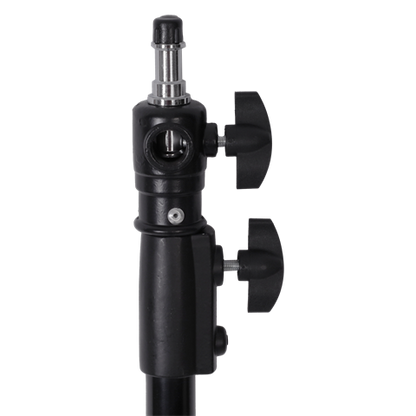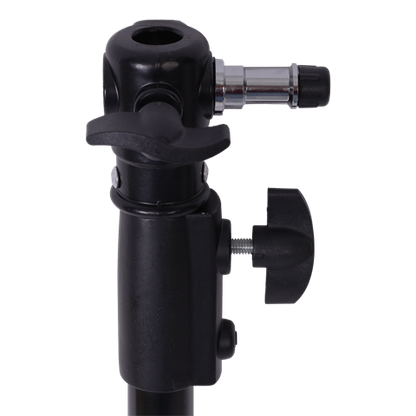 Bij dit product wordt standaard een spigotadapter (zonder schroefdraad, zie foto’s) meegeleverd. Hiermee kunt u bijvoorbeeld nog separaat een studioflitser, lamp of andere accessoire bevestigen. Mocht u op zoek zijn naar een spigot met schroefdraad, dan is de Falcon Eyes SP-B4M8M optioneel verkrijgbaar. De telescopische arm en railgeleider zitten aan elkaar vast en kunnen niet van elkaar verwijderd worden.