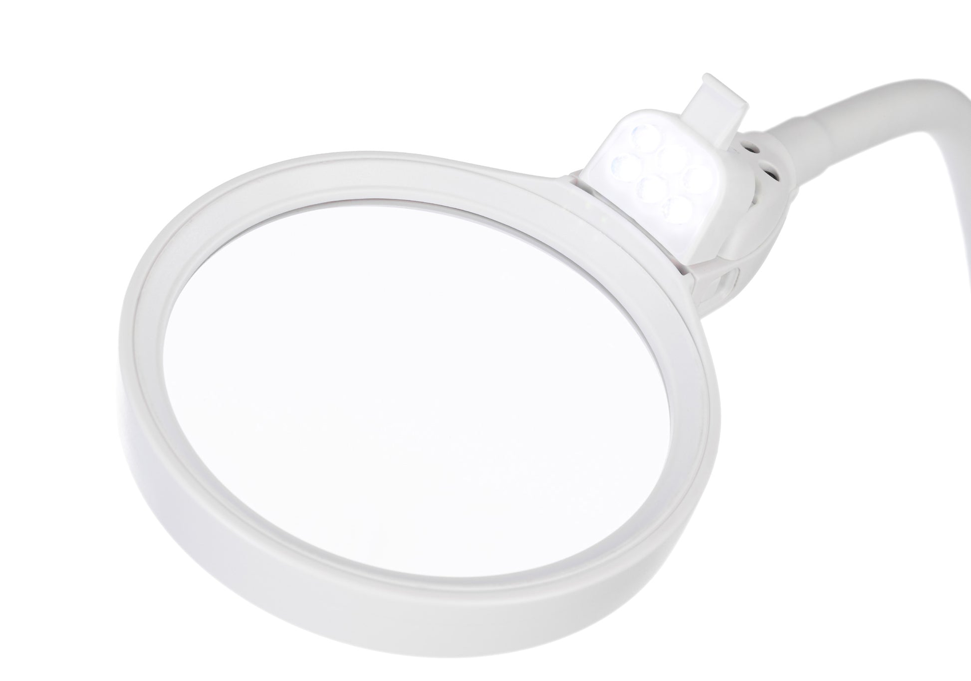 U kunt een van de drie opgenomen verwisselbare lenzen op een flexibele houder of een kleine ergonomische handgreep installeren. Afhankelijk van uw keuze, krijgt u tafelblad- of kijkmogelijkheden. U kunt een praktische bureaulamp maken door de lens in de basis te wijzigen in een plafond.