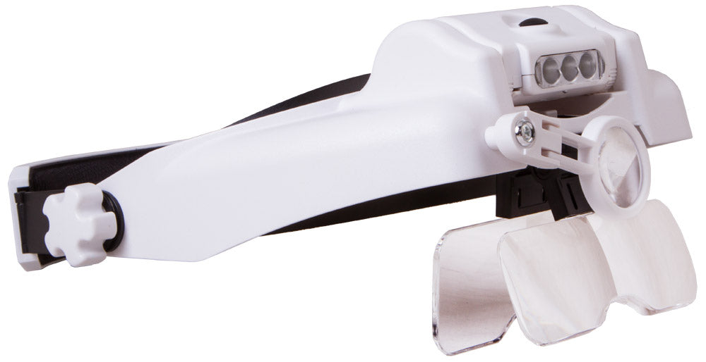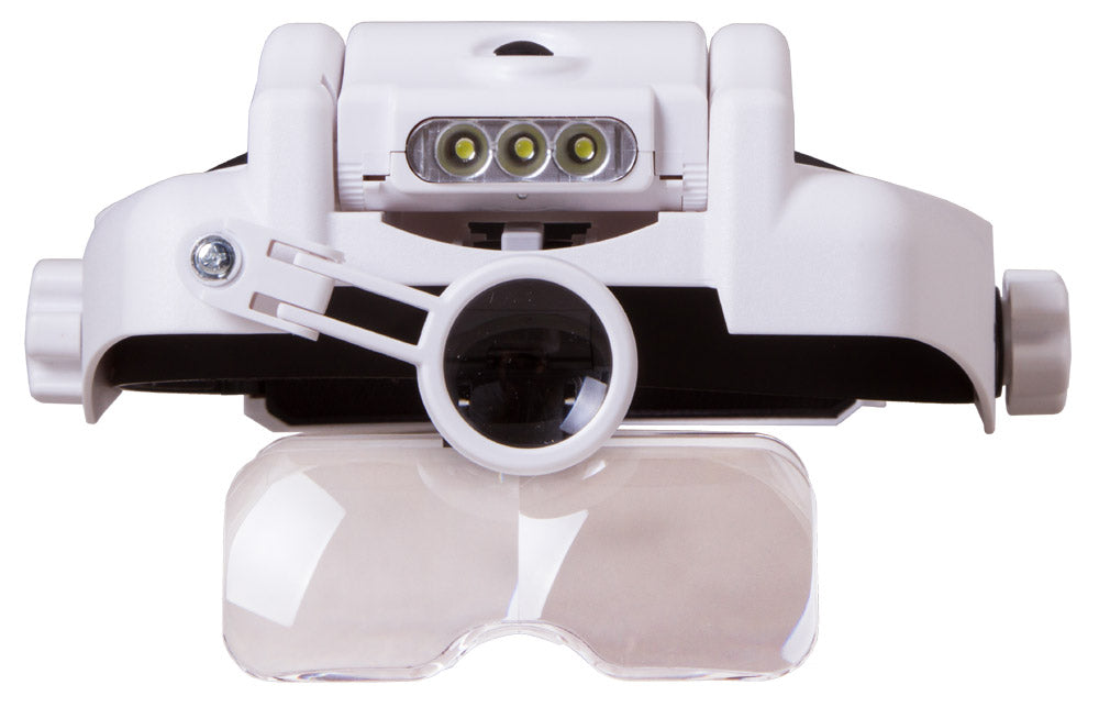 Levenhuk Zeno Vizor vergrootders zijn geweldige assistenten in je werk en hobby! Dit model heeft verwisselbare lenzen met verschillende vergrotingskracht en LED -lichten. Handige LED -verlichting wordt aangedreven door batterijen als u het niet gebruikt, u kunt het uitschakelen. De lichthoek is verstelbaar. De hoofdband is verlengbaar dat u deze eenvoudig aan uw hoofd kunt aanpassen. Het belangrijkste kenmerk is dat u de vergroter niet met uw handen hoeft te houden, waardoor ze volledig vrij blijven om werk te doen! Deze vergrootglas bevindt zich permanent voor uw ogen en wijst op het werkgebied.