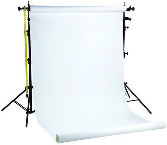 Deze Linkstar Achtergrond Support is een compleet ophangsysteem, inclusief een witte achtergrond. Met behulp van de bijgeleverde kettingset kunt u de rollen gemakkelijk op en af rollen. Omdat het systeem snel op te bouwen is, kunt u deze in uw studio gebruiken, maar ook op locatie. Er worden twee rolhouders geleverd. Bij de rolhouder zonder ketting vindt u een draaiknop waarmee u kunt instellen hoe licht of zwaar het papier afrolt. Op de laatste foto ziet u de draaiknop.