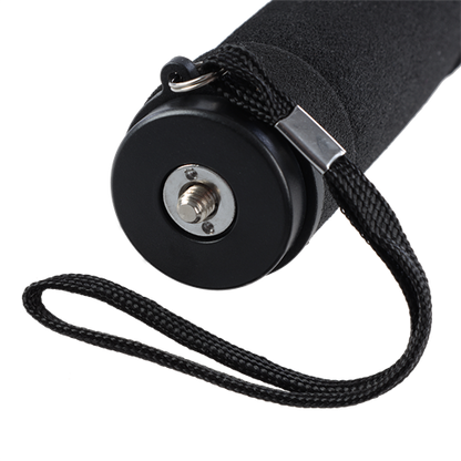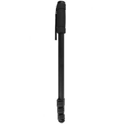 De monopod beschikt over een rubberen voetje en een uitsparing die u circa één cm in de grond kunt drukken, speciaal voor instabiele oppervlakken. Het rubberen voetje kunt u in- en uitdraaien. Verder is het statief uitgevoerd met een soft foam handgreep voor een extra hoog comfort. Aan de bovenzijde bevindt zich een polsband zodat u het geheel veilig vast kunt houden. De monopod wordt geleverd in een opbergtasje met rits en draagriem.