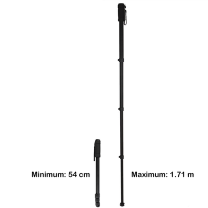 De WT-1003 van Nest is een multi-inzetbare, lichtgewicht monopod met flip-lock en heeft een maximale hoogte van 1,71m. Het eenbeen-statief bestaat uit vier secties, is erg compact en zorgt voor stabiliteit bij uw opname of observatie. De WT-1003 is voorzien van 1/4" male schroefdraad en heeft een draagvermogen tot 3 kg. Dit betekent in de praktijk dat u er vrijwel iedere foto/videocamera op kunt bevestigen, maar bijvoorbeeld ook optiekproducten (zie optionele accessoires).